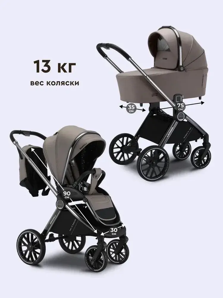 • Вес коляски составляет 13 кг, что делает её достаточно лёгкой для повседневного использования и переноски.