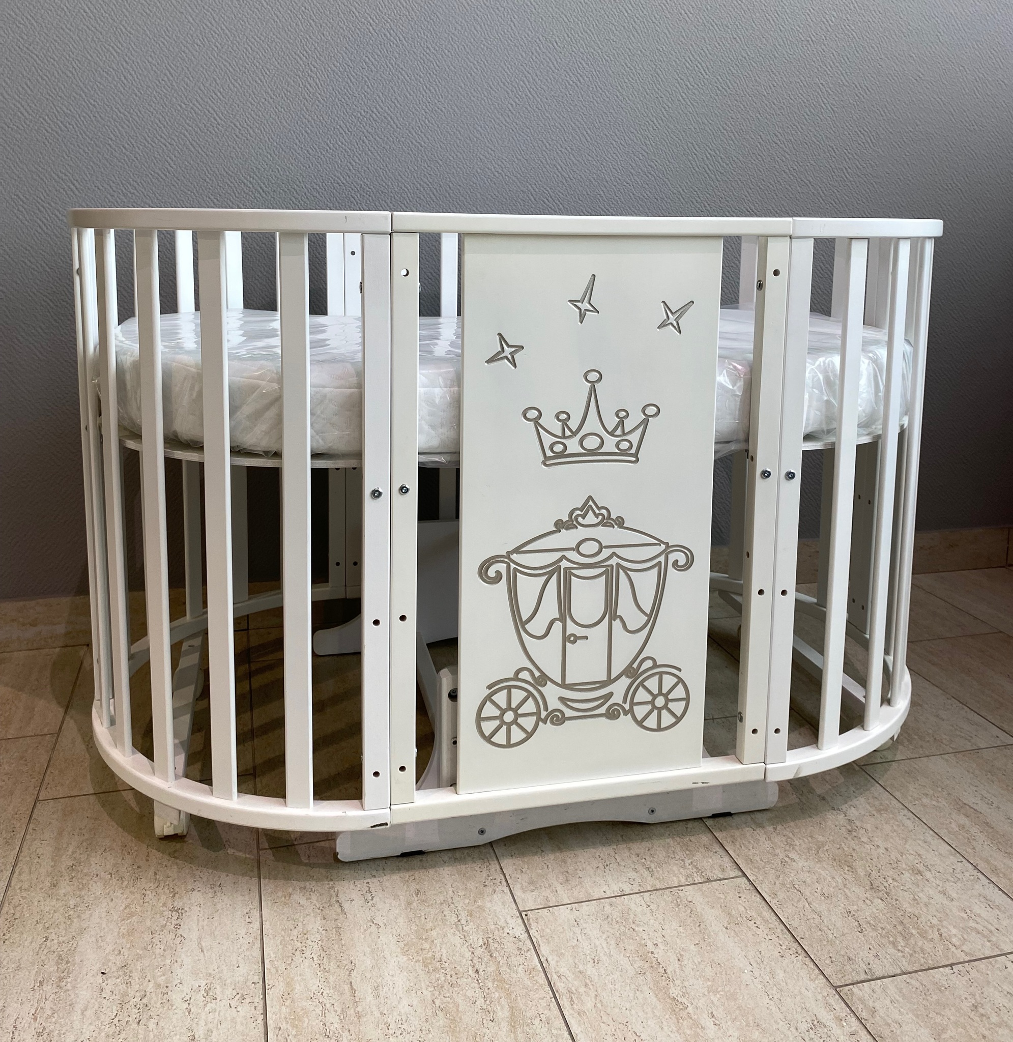 В овальной кроватке верхнюю часть решетки можно снять и тем самым обеспечить свободный доступ к ребенку.