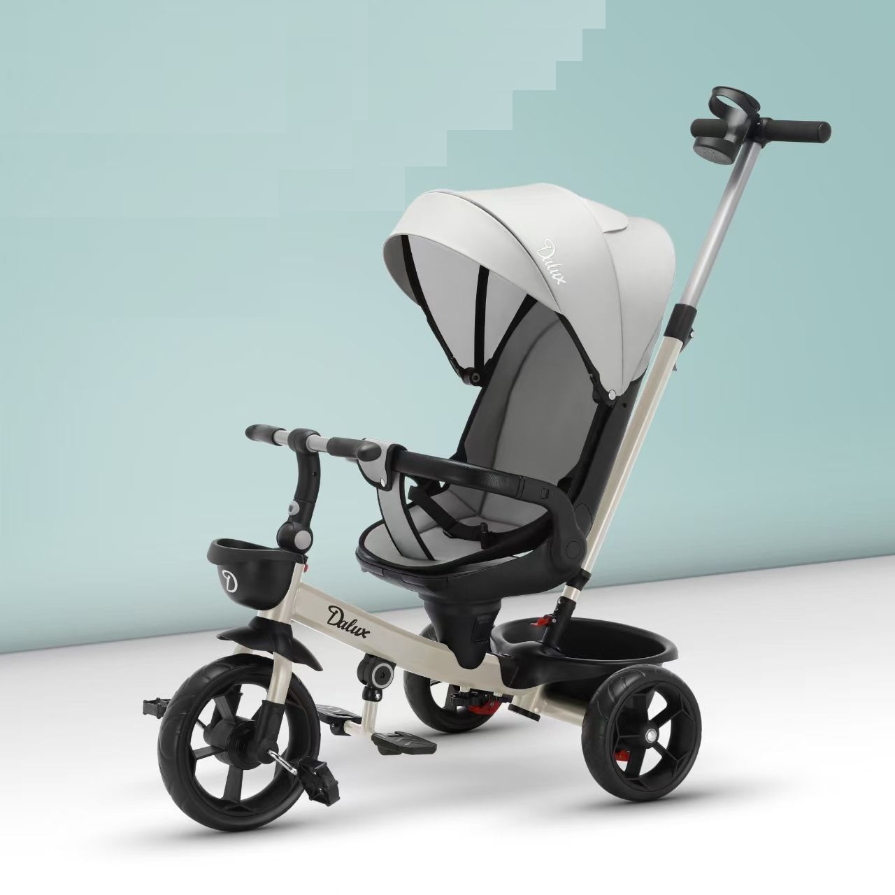 - Корзина для игрушек: Небольшая корзина сзади для любимых игрушек или небольших вещей.