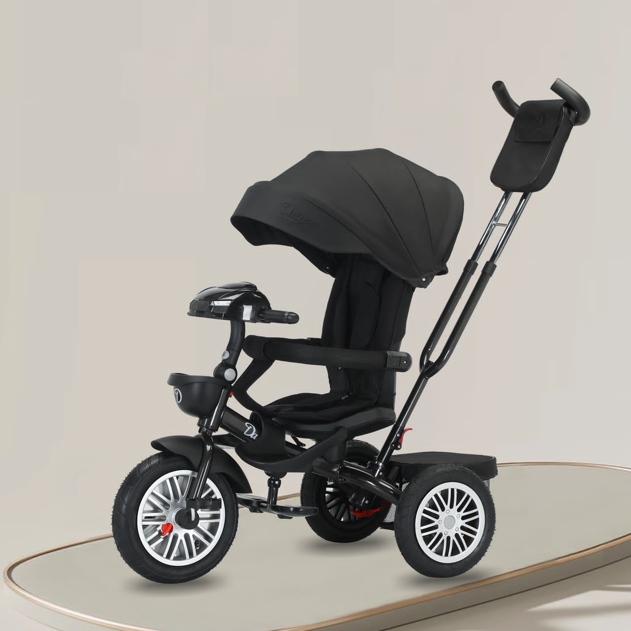 • В случае, когда ребенок подрастет и захочет управлять велосипедом самостоятельно, вы легко снимете родительскую ручку, тент, багажник, подставку для ног и дугу безопасности.